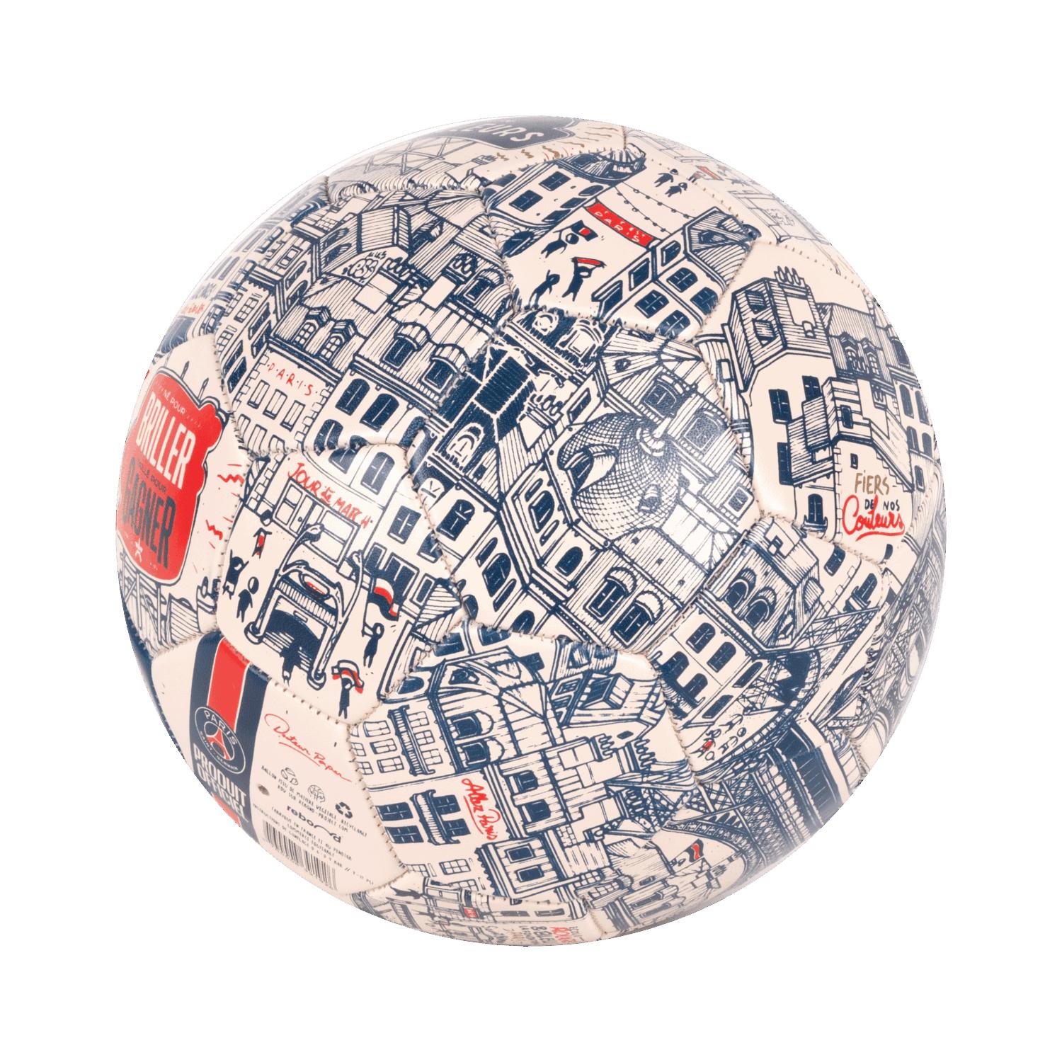 Ce ballon est le premier ballon entièrement recyclable, issu de matières végétales et recyclées produites en France. Il a été peint et cousu à la main au Pendjab dans une usine engagée pour le commerce équitable labellisée Fairtrade. Produit sans phtalate, avec des encres EN-71. Ballon de football Taille 5, qualité training, 420g.