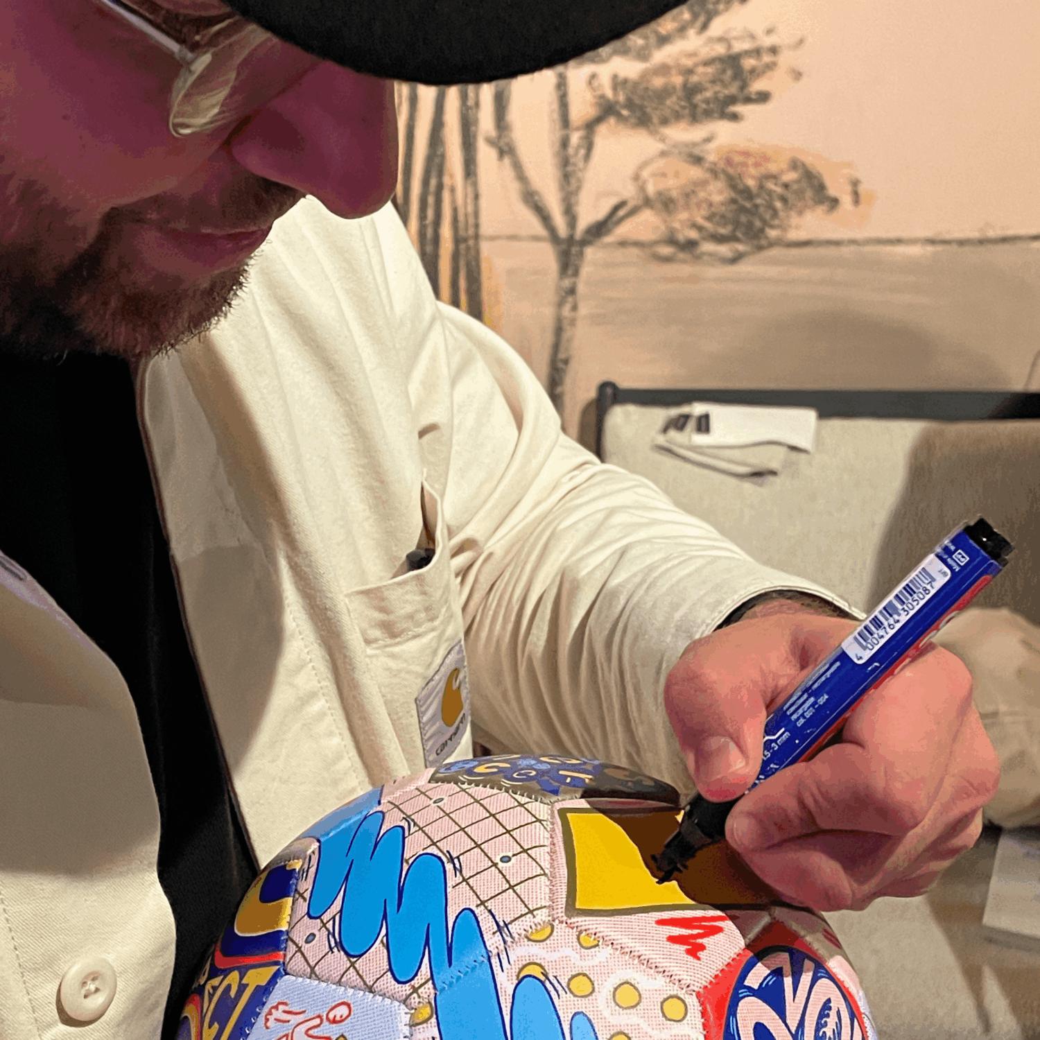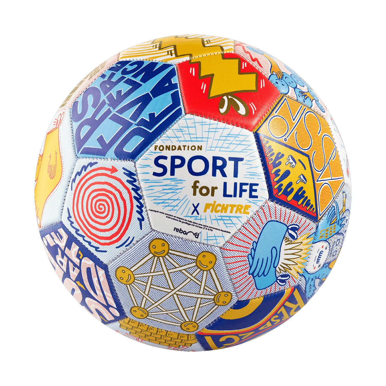 Né de la collaboration entre la Fondation Sport For Life et l’artiste suisse Fichtre, ce ballon de football unique célèbre les valeurs universelles du sport : respect, solidarité, passion et persévérance.