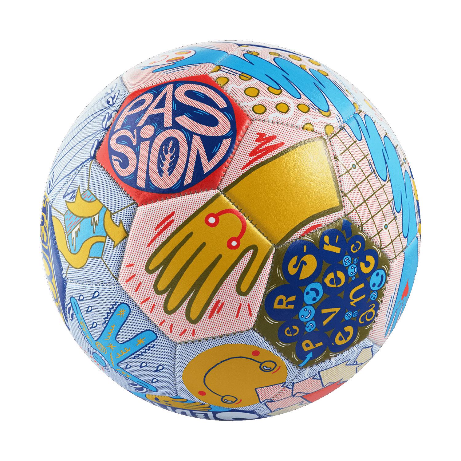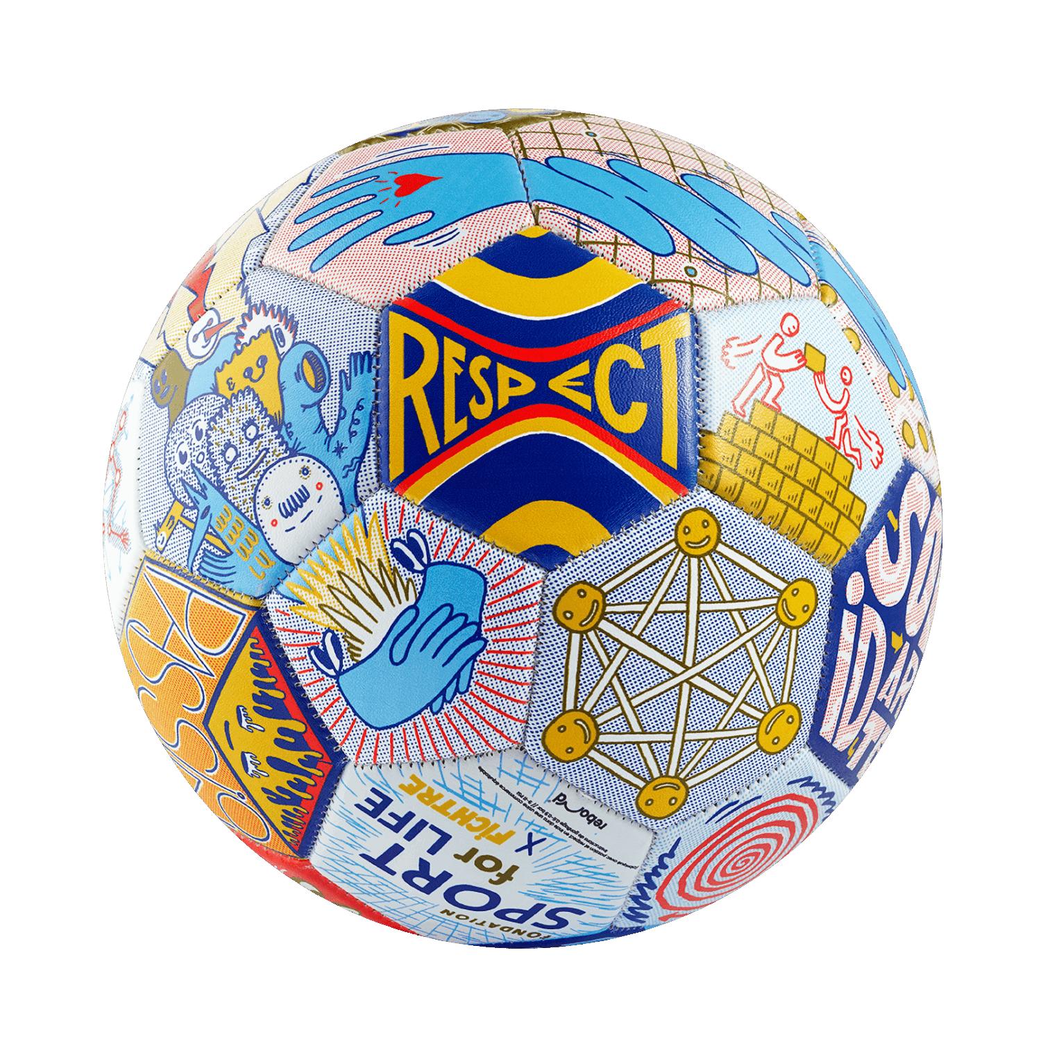 Chaque motif illustré sur les panneaux du ballon incarne ces engagements, dans le style graphique coloré et contemporain propre à Fichtre. Véritable œuvre d’art, ce ballon dépasse le simple cadre du sport pour devenir un objet de design et de collection.